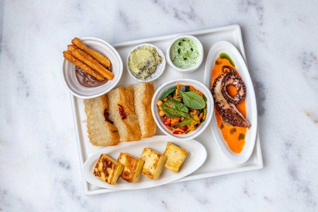 Как спешл Viva España в бистро на Большой Дмитровке посвящен солнечной Испании и отправляет в гастрономическое путешествие с южным темпераментом — так и новый завтрак-сет, который можно попробовать только здесь, имеет испанский характер. В испанский сет вошли осьминог с соусом ромеско, тортилья patatas, хлеб и масло с зеленым чили и одна из закусок на выбор — парма с инжиром или салат с нутом и маринованным цукини. Кроме того, в сет включили зеленый йогурт и чуррос со смородиной или шоколадной пастой.