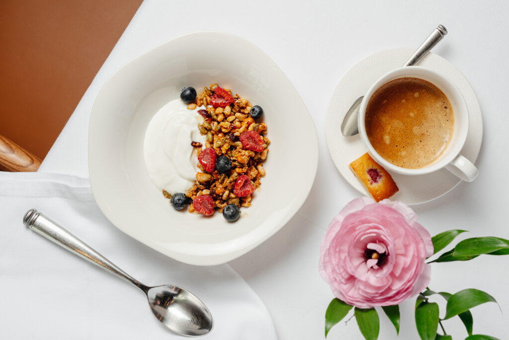 Любителей яиц на завтрак ждут скрембл, глазунья и классический французский омлет, также стоит попробовать оладьи с ягодами и греческим йогуртом или с икрой. Для тех, кто любит завтракать плотно — французский тост, бриошь с крабом и авокадо или с красной рыбой, брускетта с ростбифом, круассан с лососем и авокадо.
