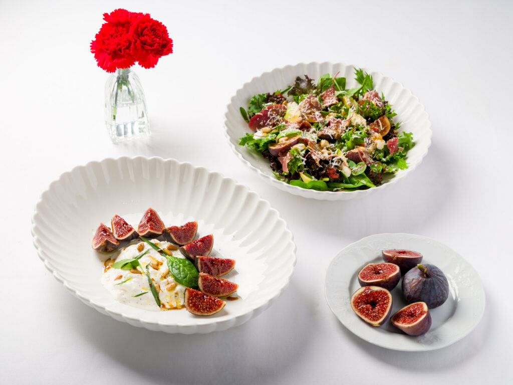 Страчателла с инжиром и салат с пышной зеленью, инжиром и вяленой уткой — в гранд-кафе «Dr. Живаго» актуальные осенние блюда подают с абхазским инжиром. Фига, винная ягода, смоковница — все это инжир — самый цитируемый фрукт нынешней осени. Сладкие, текстурные, чуть терпкие плоды созданы для приятной трапезы: страчателла с инжиром, салат с вяленой уткой, инжиром и кедровыми орешками.