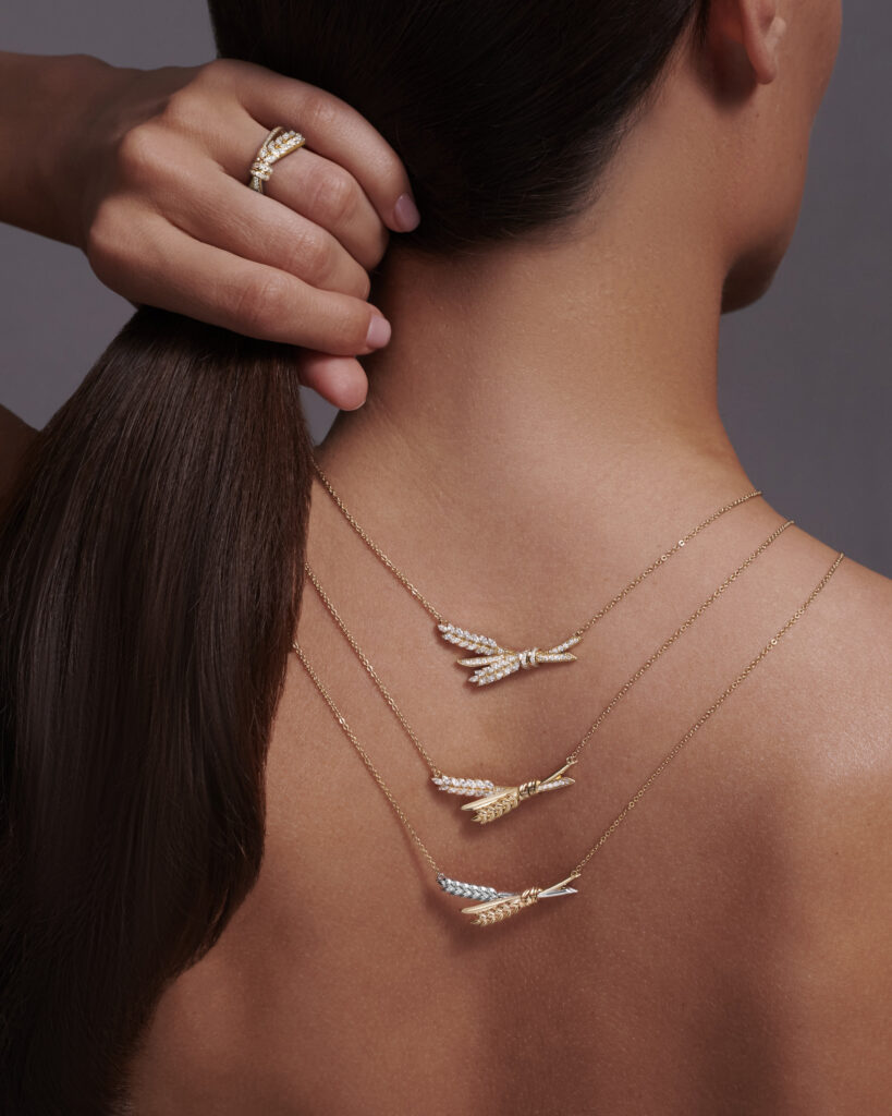 Коллекция «Колос», вдохновленная образом спелого колоса как символа изобилия, созидания и женственности, уже стала изюминкой бренда. В каждом изделии — метафора жизненной энергии, женской мягкости и силы, способной создавать, защищать и вдохновлять. В обновленную коллекцию вошли: три вида колье; кольцо из желтого золота и брошь из серебра 925 пробы, покрытая родием, с 373 фианитами бриллиантовой огранки круг.