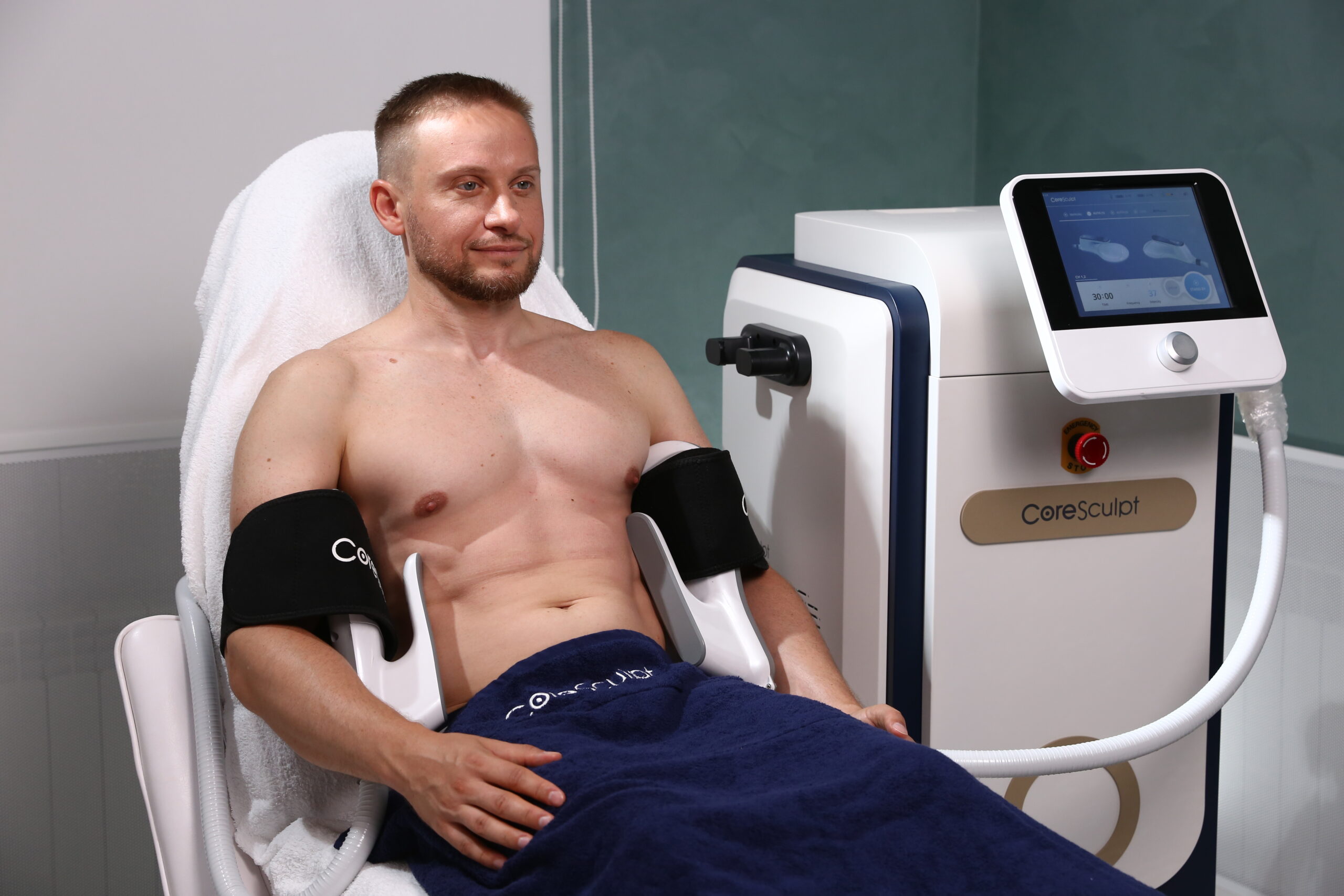 Высокосфокусированная электромагнитная энергия с высокой плотностью магнитной индукции в 3 Тесла обеспечивает повторяющиеся сокращения и расслабления мышц, так CoreSculpt воздействует на мышцы тела от 20 до 45 тысяч раз за 30 минут процедуры. Эта мышечная стимуляция, выражающаяся в повторяющихся сокращениях и расслаблениях мышц, приводит к эффекту, сравнимому с результатом очень интенсивных физических упражнений в зале. Однако, применяя CoreSculpt, можно укрепить мышцы до уровня, которого трудно достичь, делая обычные физические упражнения. Такое воздействие вызывает чрезмерную клеточную активность, что приводит к интенсивному липолизу и уменьшению жировых накоплений внутри адипоцитов. Конечный результат — комбинация расщепления жира, укрепление и рост мышц. Аппарату подвластны все зоны: на руках, бедрах, животе, ягодицах. Он позволяет тонизировать и накачивать большую ягодичную мышцу и устранять признаки целлюлита.