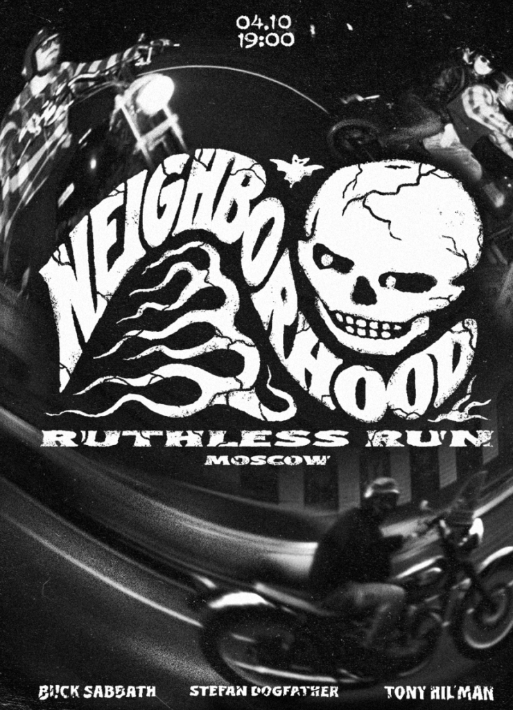 4 октября мотосообщество Ruthless Run и бар Neighborhood объединяются, чтобы официально закрыть байкерский сезон. Финальный заезд завершится громкой уличной вечеринкой во дворе бара для тех, кто живет скоростью и свободой. Гостей ждут к 19:00. В этот вечер двор Neighborhood превратится в эпицентр байкерской культуры: гостей ждут припаркованные мотоциклы, рев моторов и атмосфера настоящей уличной тусовки.