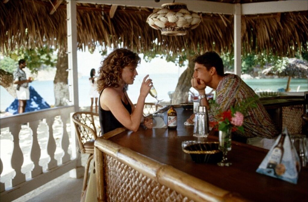 Том Круз сыграл в «Коктейле» Брайана Фланагана, который мечтает о богатстве и успехе, но в итоге оказывается за стойкой бара. Здесь он неожиданно открывает в себе талант: его шоу с бутылками и коктейлями делает его звездой Манхэттена. Но встреча с Джордан (Элизабет Шу) меняет все — и герой понимает, что деньги и слава не всегда приносят счастье. В этом фильме бармен — воплощение американской мечты, но и предостережение: за красивой витриной всегда стоит вопрос, кто ты есть на самом деле.