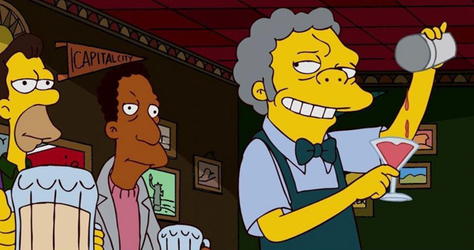 В бесконечной истории про семью Симпсонов есть свой бармен — Мо Сизлак, хозяин любимой пивной Гомера. Мо — одновременно друг, исповедник и раздражитель. Он может поддержать, но также способен поссориться и нагрубить. Это гротескный, но очень узнаваемый образ: человек, который годами стоит за стойкой и видит весь город, со всеми его радостями и бедами. Бар Мо — место, где обсуждается все — от футбола до политики. Благодаря Мо образ бармена окончательно стал частью массовой культуры.