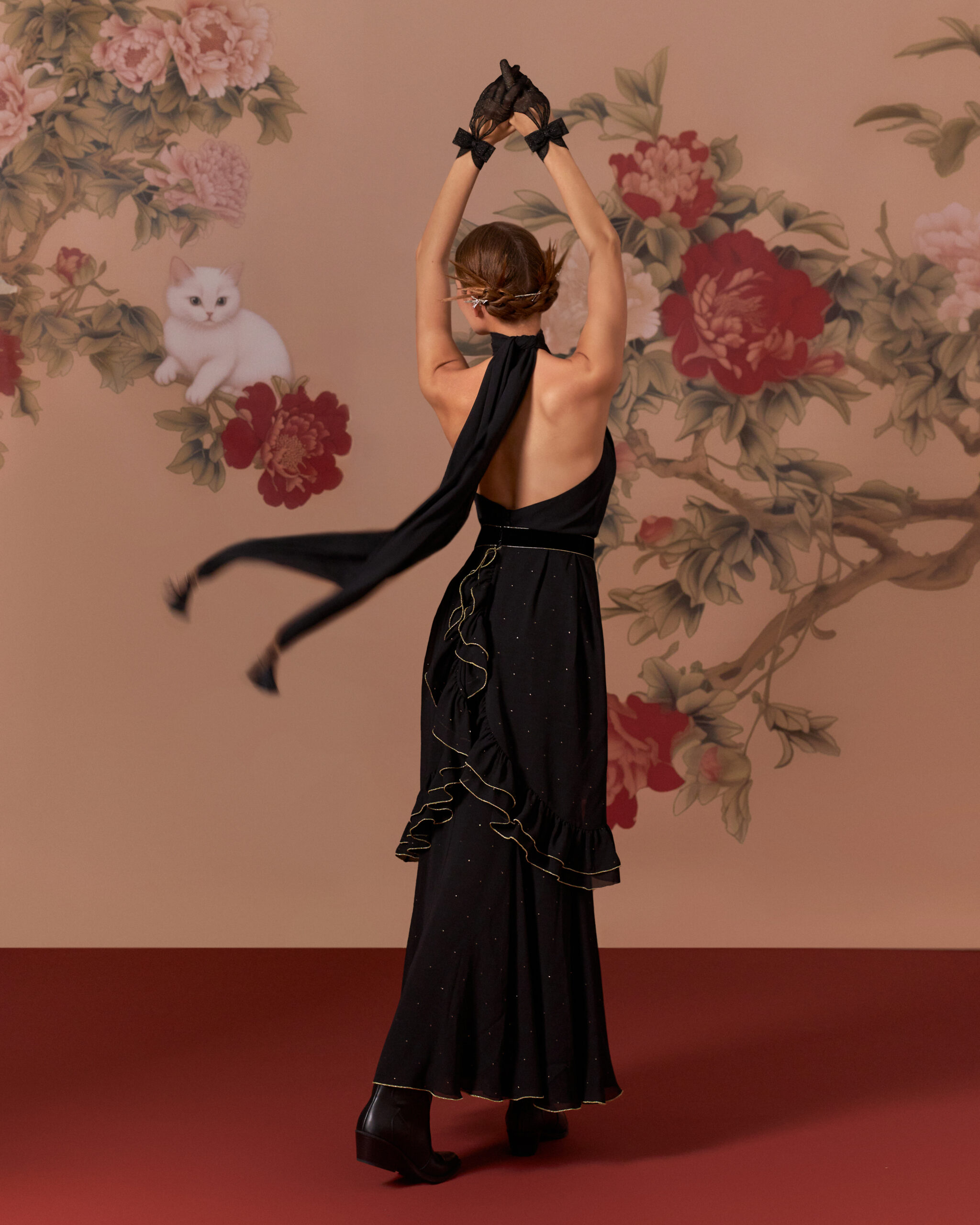 Коллекция Murmure de Soie стала для бренда Meowshka логичным продолжением его ключевых принципов — внимания к деталям, любви к винтажной эстетике и работе с редкими тканями. Вдохновленная культурным наследием Восточной Азии, она обращается к традиционным силуэтам Китая и Японии, истории шелка и визуальному языку, формировавшемуся на протяжении веков, но переосмысляет их в современном дизайнерском контексте.