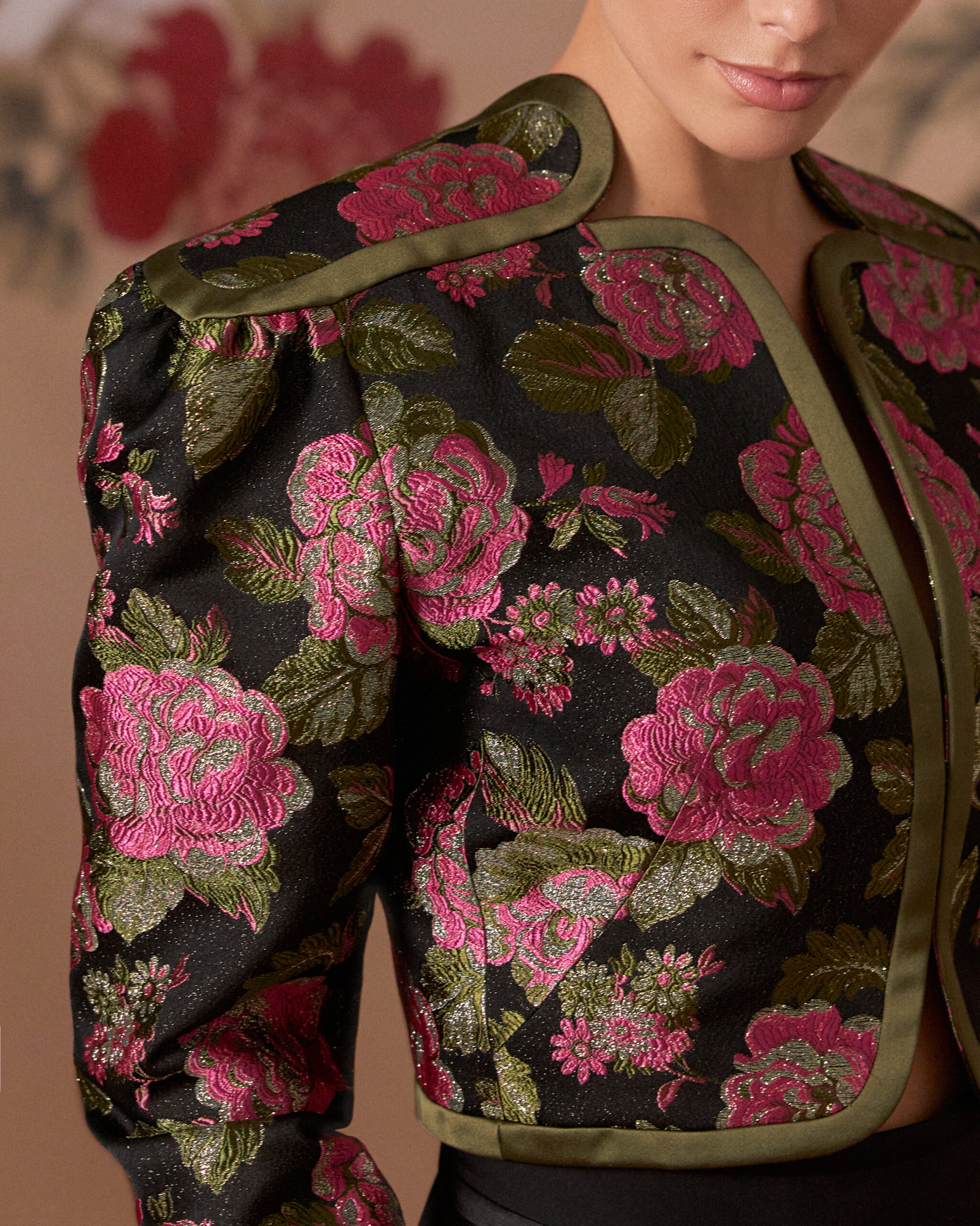 — Это такой же мой любимый процесс, как поиск винтажа. Что-то найдено на аукционах, а что-то в особенных магазинах Франции и Италии, которые я давно нашла, и они имеют часть сохранившихся тканей времен 1970-х—1990-х годов. Все наши ткани особенные, есть также ткани винтажные из Китая, шелковые жаккарды.