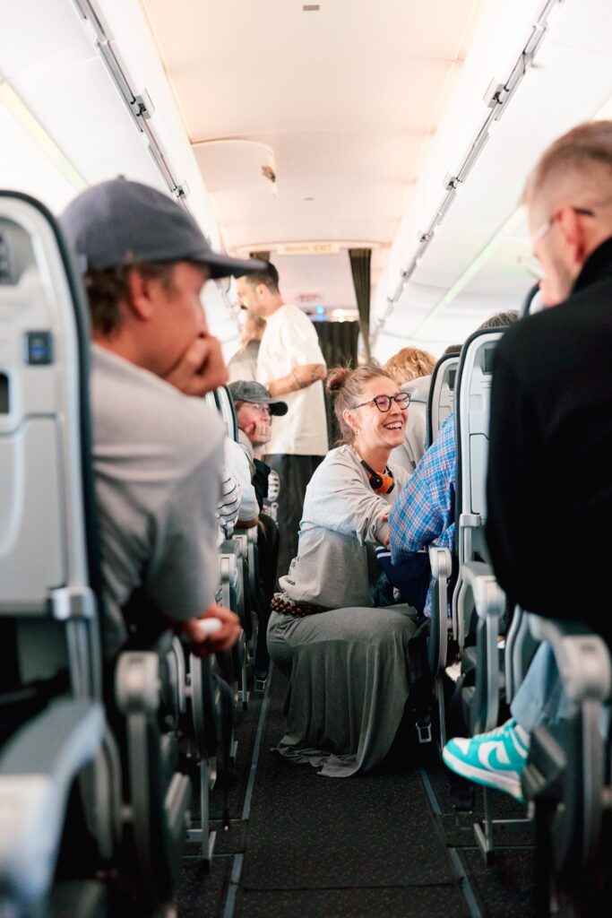 Идеологи и основатели проекта Ксения Собчак, Евгения Суфиянова, а также куратор деловой программы Александр Перепелки объявили о старте модного лагеря еще до прибытия в Сочи и сделали это красиво. Более 110 участников летели на юг отдельным рейсом авиакомпании S7 Airlines, официального партнера кампуса. В поездке всех пассажиров ждали памятные подарки, специальные сеты, разработанные для рейса, и первый полноценный нетворкинг. А ожидать посадку предлагали в бизнес-зале авиакомпании, за классическим завтраком и лучшим видом на аэропорт.