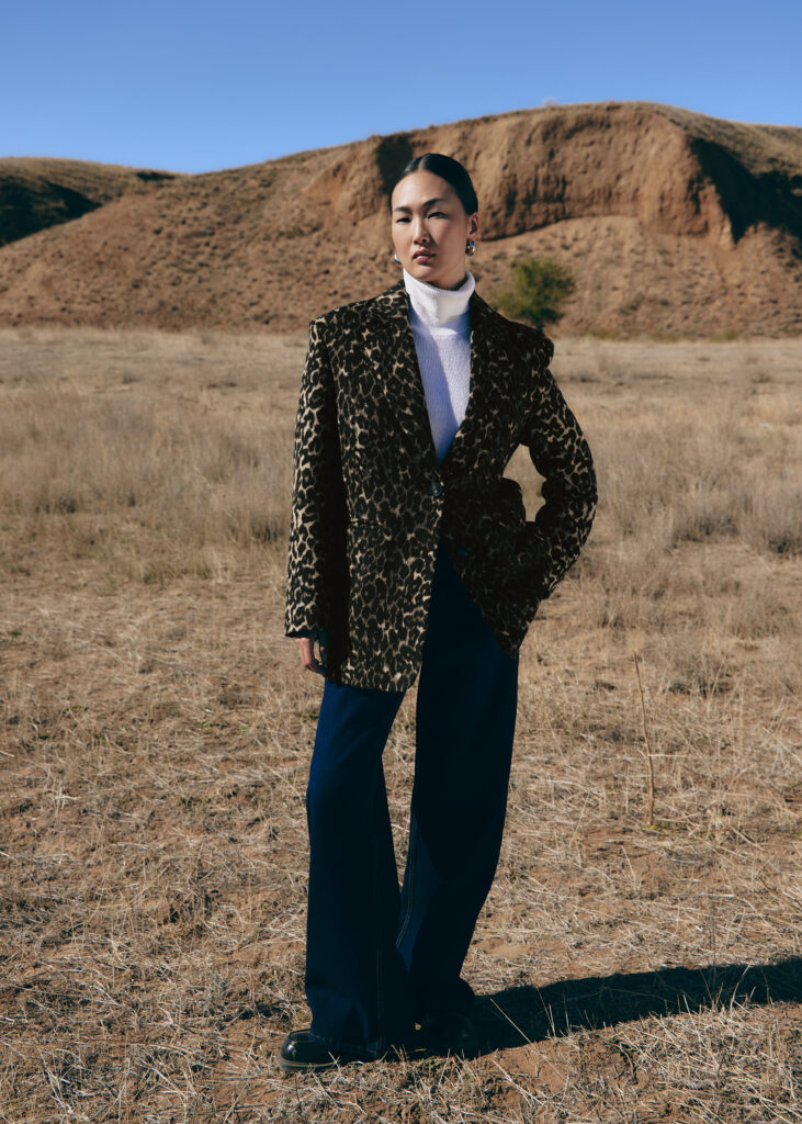 - Pompa, 28 900 рублей — в новой осенне-зимней коллекции представлено пальто с выразительным леопардовым узором. В модели плавные, мягкие линии и гармония восточной традиции соседствуют с четкими, маскулинными формами, словно позаимствованными с мужского плеча. В составе премиальная шерстяная ткань. Изделие однобортное, со втачным рукавом и английским воротником.