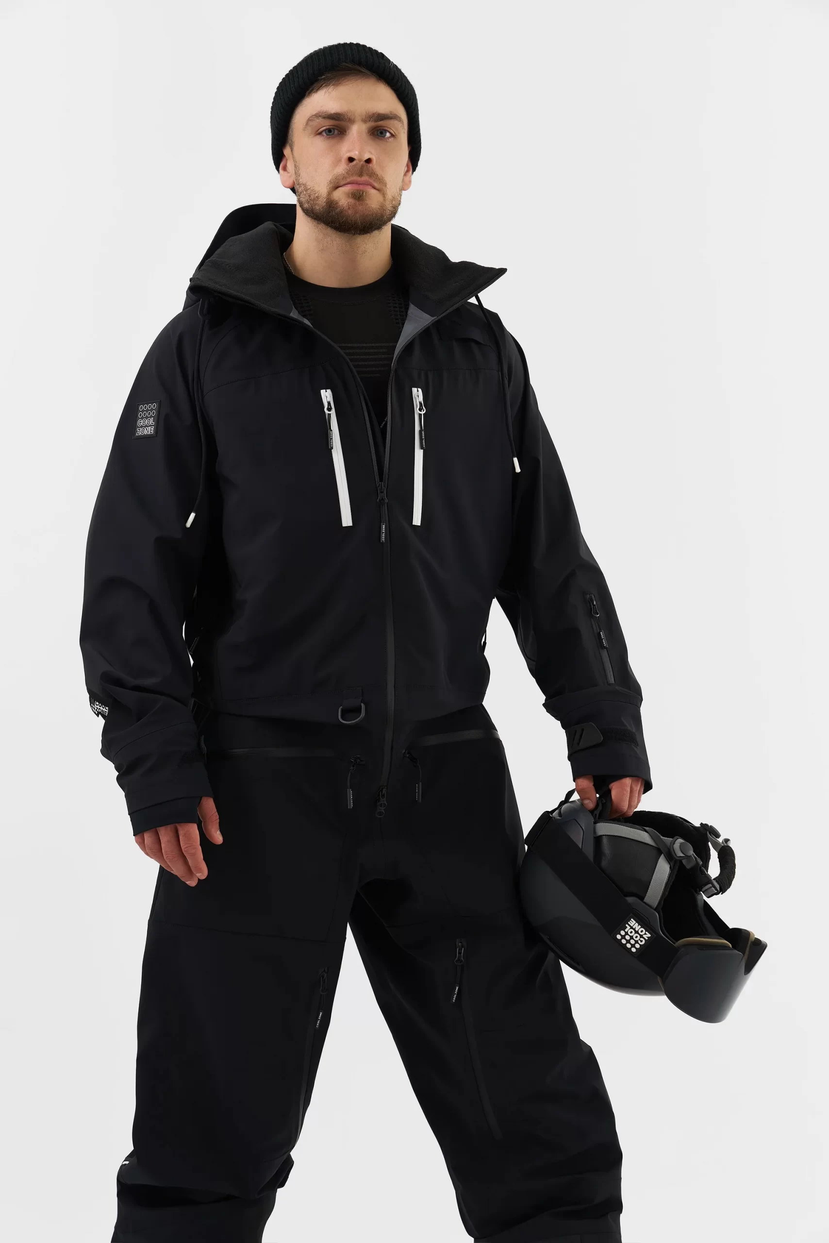 - Cool Zone, 64 000 рублей — неутепленный комбинезон в базовом черном оттенке выполнен из трехслойной мембранной ткани. Она защищает от влаги и имеет хорошую воздухопроницаемость. У модели несколько карманов, включая карман для ски-пасса на рукаве. А с внутренними лямками комбинезон удобно носить в помещениях.