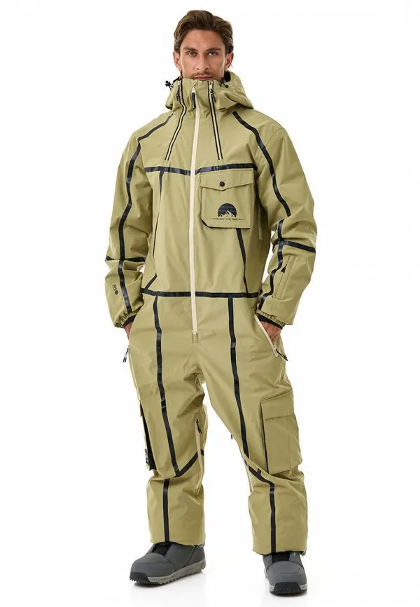 - Dimito, 45 950 рублей — комбинезон в стиле унисекс оснащен ветро- и влагозащитной мембраной и обработан DWR, что делает его водонепроницаемым. Застегивается изделие на диагональную молнию. У модели множество функциональных карманов. Вентиляционные отверстия расположены подмышками и на внутренней стороне ног. Края штанин можно расширить.