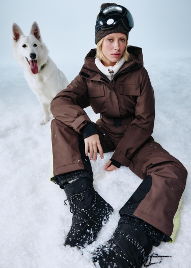 - Sela, 18 999 рублей — утепленный комбинезон полуприлегающего силуэта с застежкой на водоотталкивающую молнию и планку на липучках. Капюшон и высокий воротник-стойка защищают от ветра. На рукаве предусмотрен карман для ски-пасса. В комплекте идет съемный пояс для регулировки на талии. Внутренняя часть брюк с ветрозащитными манжетами выполнена на резинке и крючках для крепления к ботинкам.