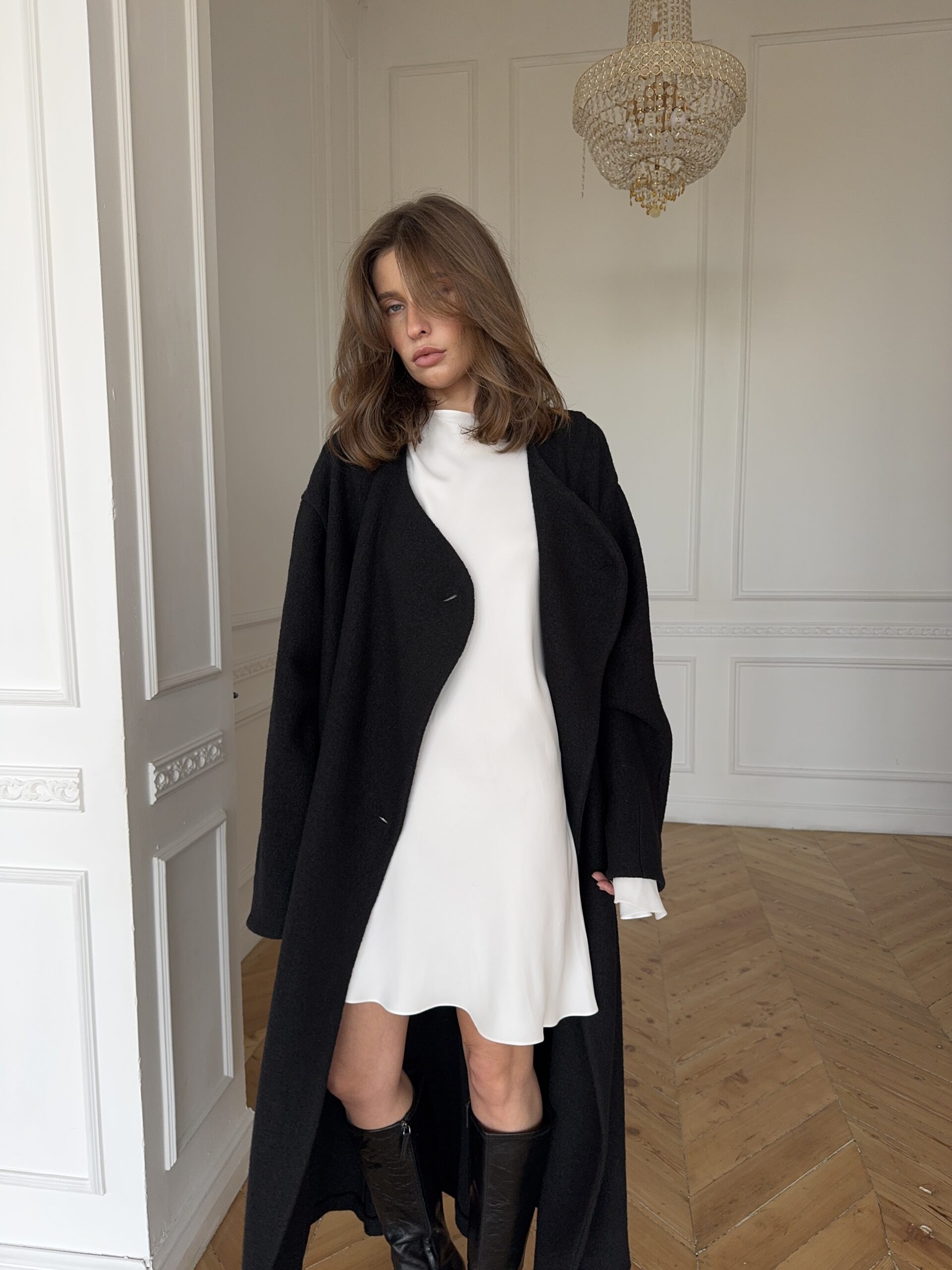 В разделе верхней одежды появилось черное пальто из буклированной мягкой шерсти. Созданная в свободном силуэте, модель позволит носить объемные вещи: джемперы, жакеты, свитшоты. Шоколадный же вариант длиной до щиколотки дополнили поясом. Изделие выполнено без подклада, чтобы сохранить максимальную легкость.