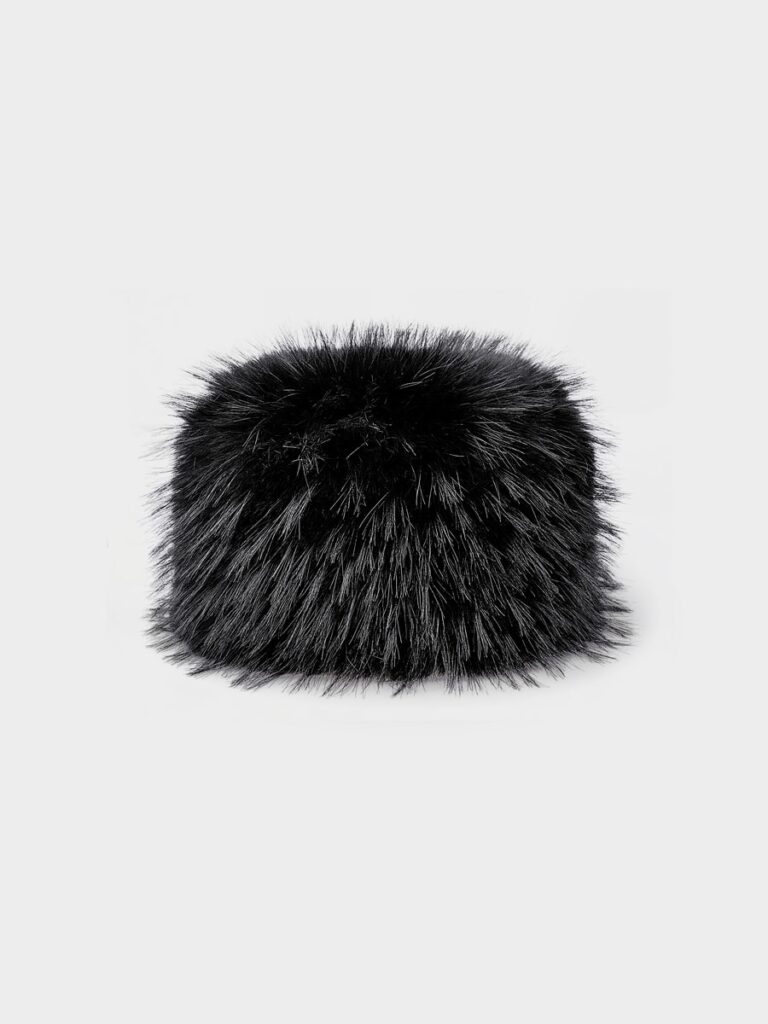 - Шапка, Love Republic, 1999 рублей — модель из искусственного длинношерстного меха на подкладе в черном оттенке выглядит как идея для самых роскошных шуб. Она подойдет верхней одежде любой длины и сделает аутфит более романтичным и женственным. А красная помада развернет образ в сторону 1990-х или slavic core.