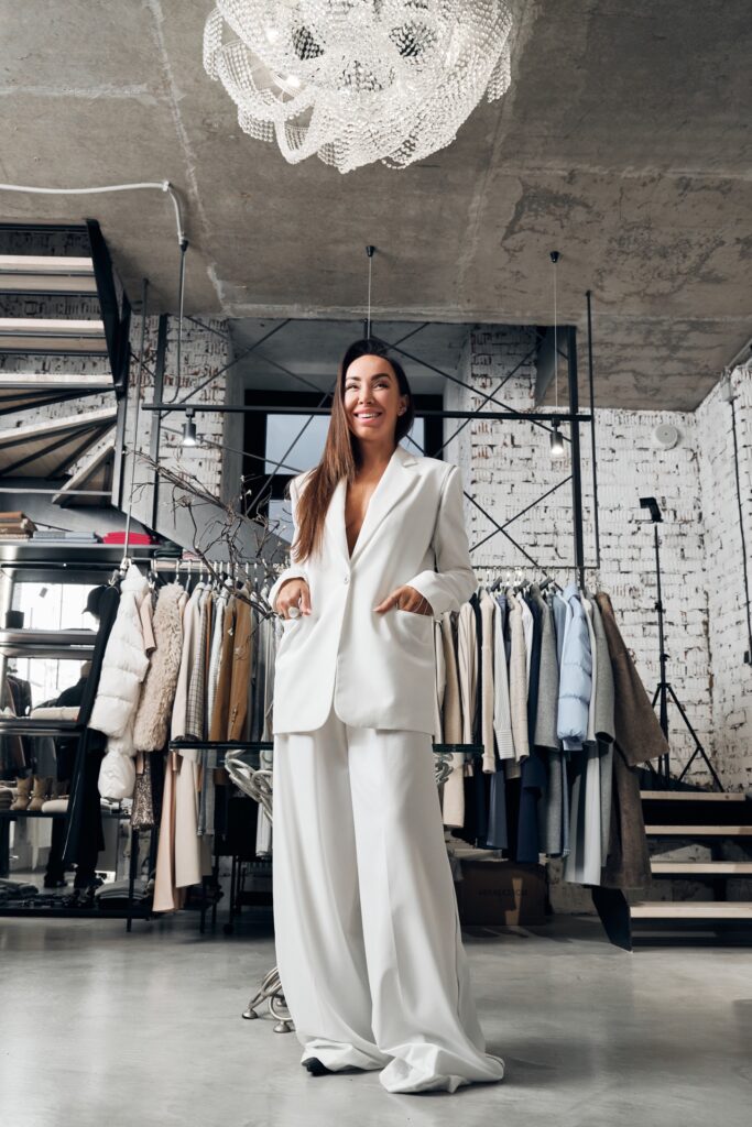 Свободный белый костюм или жакет — это не просто одежда, это чистый холст для ваших стилистических экспериментов. Он обладает несомненными преимуществами: с помощью аксессуаров его легко превратить его в эффектный ансамбль, притягивающий взгляды и комплименты; меняя детали, вы каждый раз получаете новый образ. Комплект можно носить раздельно — жакет и брюки легко комбинируются с другими вещами из вашего гардероба. Белый цвет, несмотря на свою выразительность, удивительно податлив. Он легко «подчиняется» другим оттенкам, позволяя создавать бесконечное множество образов.