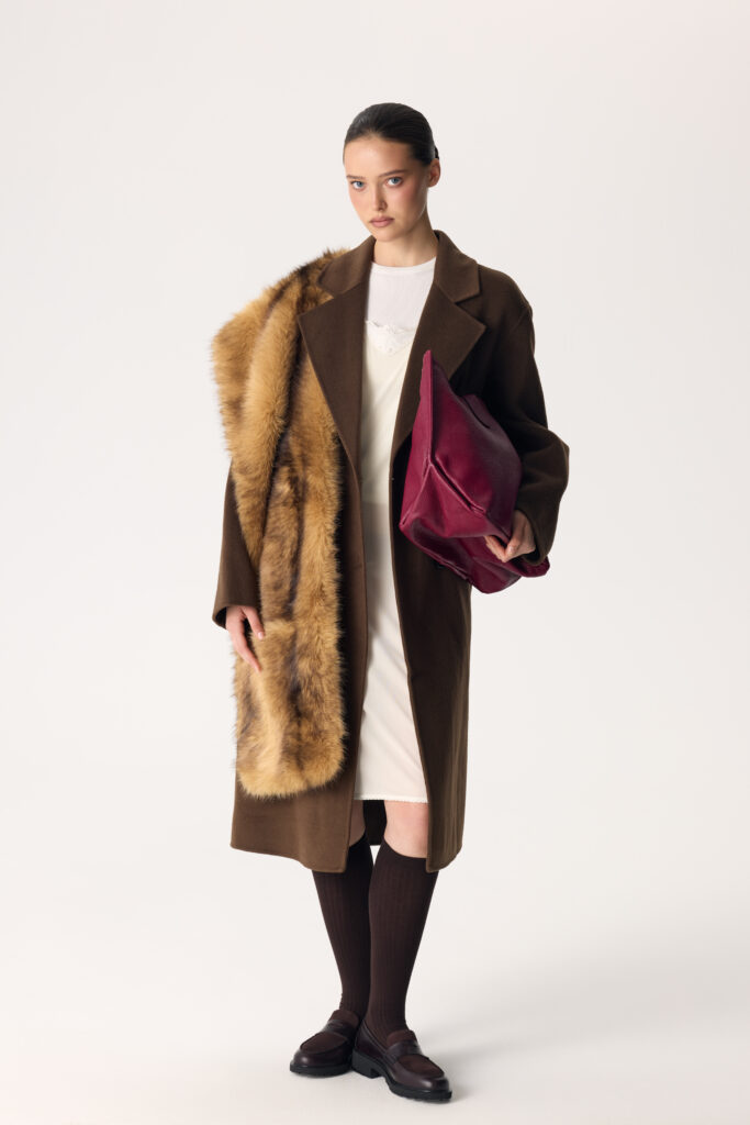 Новая осенне-зимняя коллекция COCOSHNICK HEADDRESS — ода движению. Ее героиня живет в городе, но вдохновляется природой — ее ритмом, оттенками, фактурами. Цветовая палитра коллекции построена на глубоких природных тонах: графит, горький шоколад, рыжий и хаки. Им помогают раскрыться вдумчиво выбранные фактуры: кожа с тиснением под крокодила, мягкий трикотаж, натуральный мех норки, фетр, замша, акценты из металла в латунном оттенке. Среди новинок и классики: шляпа-федора, расслабленная шапка-бини, повязки на голову в ретростиле, уютные трикотажные капюшоны. Капсулу также дополняют аксессуары: варежки, шарфы, шнур-«нетеряшка», к которому крепятся варежки.