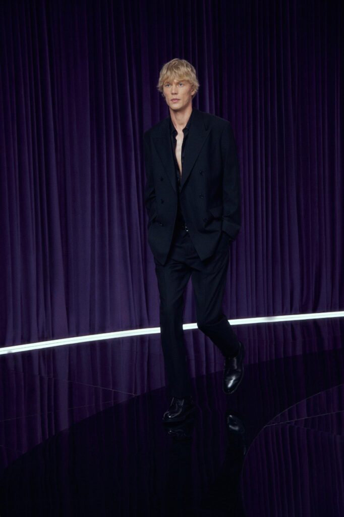 Среди новинок линии Man — однобортный блейзер из хлопкового бархата, классические прямые брюки из костюмной шерсти и разные вариации рубашек: свободного кроя с широким шалевым воротником и длинными рукавами, сатиновая из смесового шелка, с галстуком в шоколадном оттенке и классическая белая. Мастхэв капсулы — костюм-«тройка» в шоколадном оттенке из шерстяного материала с сатиновым отблеском.