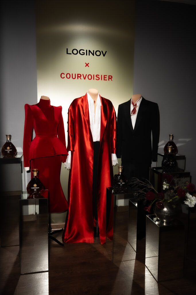 16 октября дизайнер Дмитрий Логинов представил капсульную коллекцию LOGINOV x Courvoisier, в рамках проекта Flavors of Couture, в центре внимания которого диалог гастрономии, высокой моды и искусства — миров, объединенных мастерством, вниманием к деталям и тонким чувством стиля. В капсулу вошли: халат из шелкового атласа, расшитый каплями-бусинами янтарного цвета, жакет из красного бархата приталенного силуэта с острыми плечами, брошь-булавка с каплей цвета коньяка, шелковый галстук твилли, кисет формата double-skin.