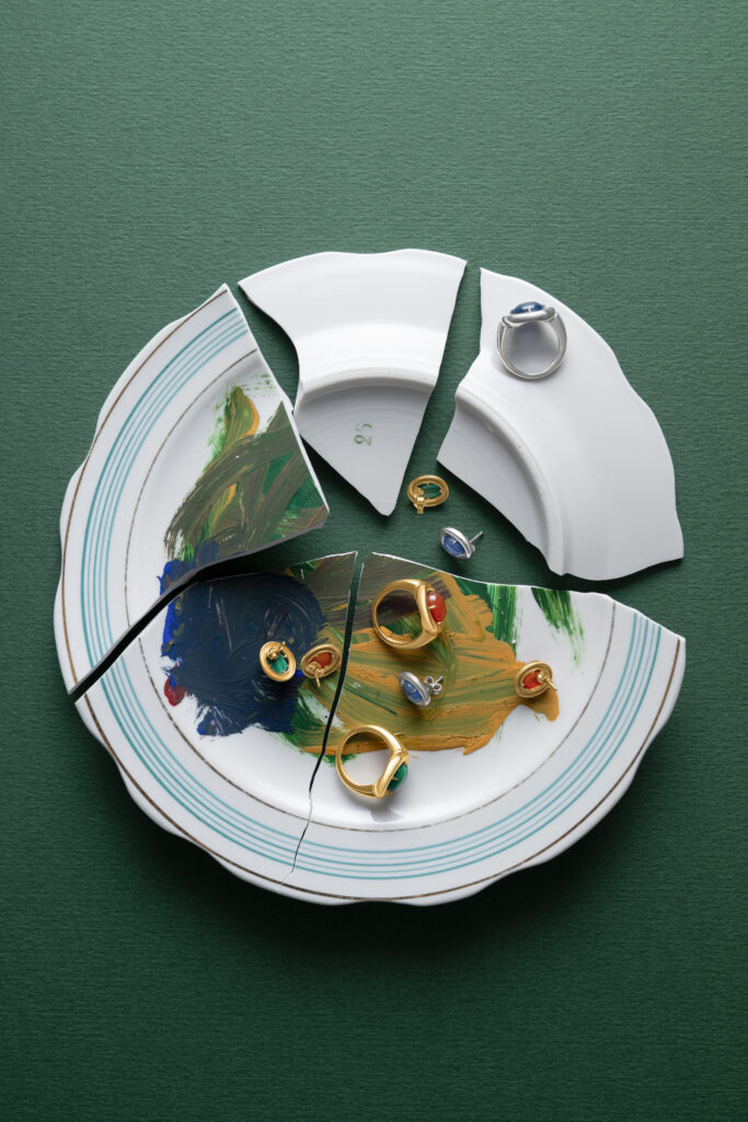 Moonka представляют дроп Ai с уменьшенными версиями колец и серег. Украшения стали более лаконичными, но остались такими же выразительными, как и в первой коллекции. Здесь сохранили форму и акцент на камне, а также идею «все лучшее внутри». Три вариации с миниатюрными кабошонами: малахит в лимонной позолоте, сердолик в розовой, кианит в родие. Серьги и кольца можно носить как самостоятельно, так и сочетая их с украшениями первой коллекции Ai. Рекомендуют миксовать оттенки и размеры, играя на контрасте форм и металлов.