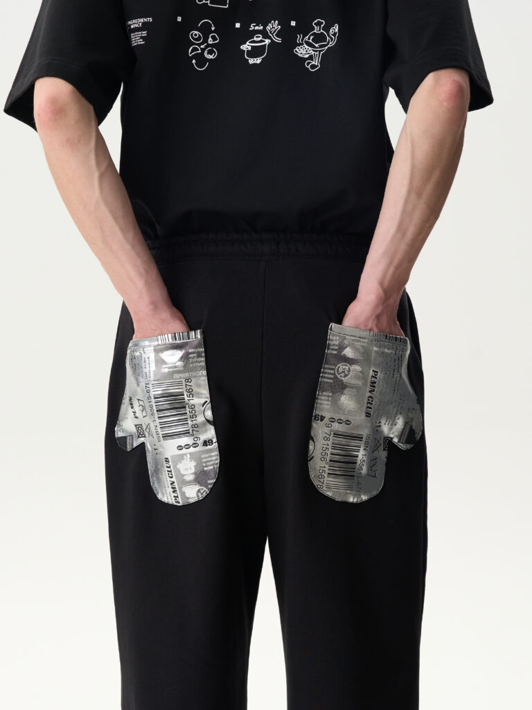 Каждая вещь в первой капсуле имеет отсылку к источнику вдохновения: это может быть принт c горой пельменей и майонезной надписью Sorry или пошаговым рецептом, как варить пельмени, цвет ткани, напоминающий тесто, логотип с пельменем, напоминающим планету Сатурн, или акцентная деталь — завязки с цветными бусинами в форме пельменей на шортах, замок на худи в виде скалки или карманы-«прихватки» на джинсах. Так, вместительный тканевый шопер трансформируется в фартук, а регулировка размера кепки напоминает мягкий пельменный бортик. Отдельное направление — бижутерия из серебра: в коллекции представлены подвеска-скалка и кулон в форме пельменя со съемными «начинками».