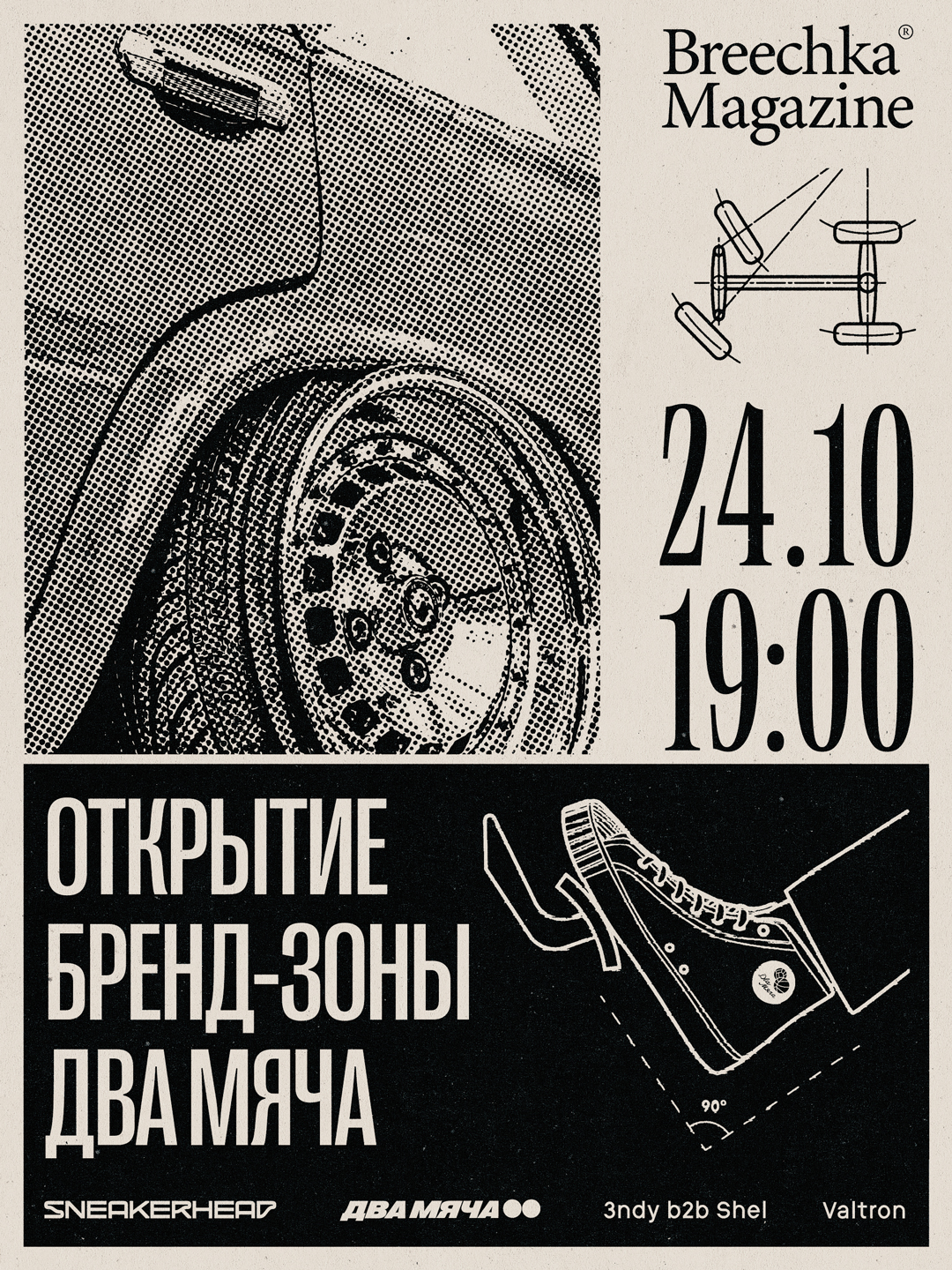 В эту пятницу, 24 октября, в магазине Sneakerhead на Никольской состоится мероприятие по случаю открытия бренд-зоны «Два Мяча» при поддержке независимого журнала Breechka Mag. В честь запуска бренд-зоны команда «Два Мяча» подготовила серию активностей, отражающих дух уличной культуры и визуальной эстетики бренда. В программе — выставка фоторабот сооснователя Breechka Mag Леонида Сорокина, гонки на RC-машинках, а также DJ-сеты от друзей бренда: Valtron, 3ndy и Shel. Гостей мероприятия ждут welcome-дринки от московской пивоварни Zagovor Brewery.
