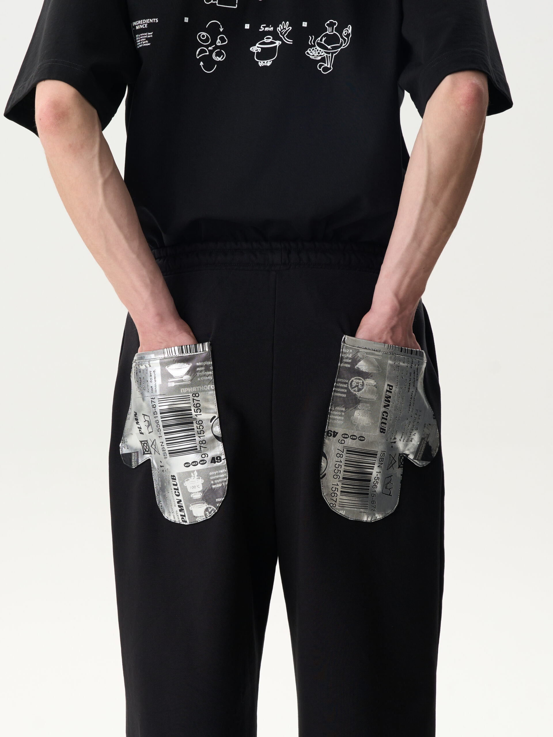 Каждая вещь в первой капсуле имеет отсылку к источнику вдохновения: это может быть принт c горой пельменей и майонезной надписью Sorry или пошаговым рецептом, как варить пельмени, цвет ткани, напоминающий тесто, логотип с пельменем, напоминающим планету Сатурн, или акцентная деталь — завязки с цветными бусинами в форме пельменей на шортах, замок на худи в виде скалки или карманы-«прихватки» на джинсах. Так, вместительный тканевый шопер трансформируется в фартук, а регулировка размера кепки напоминает мягкий пельменный бортик. Отдельное направление — бижутерия из серебра: в коллекции представлены подвеска-скалка и кулон в форме пельменя со съемными «начинками».