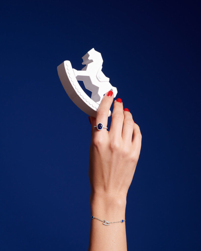 В основе каждого украшения — образ ностальгической лошадки — игрушки, которая на первый взгляд может показаться легкомысленным выбором для ювелирной коллекции. Но именно в этом и заключается революция. Ведь в мире, где роскошь часто ассоциируется с серьезностью, TOY предлагает другой путь: путь радости, легкости, свободы.
