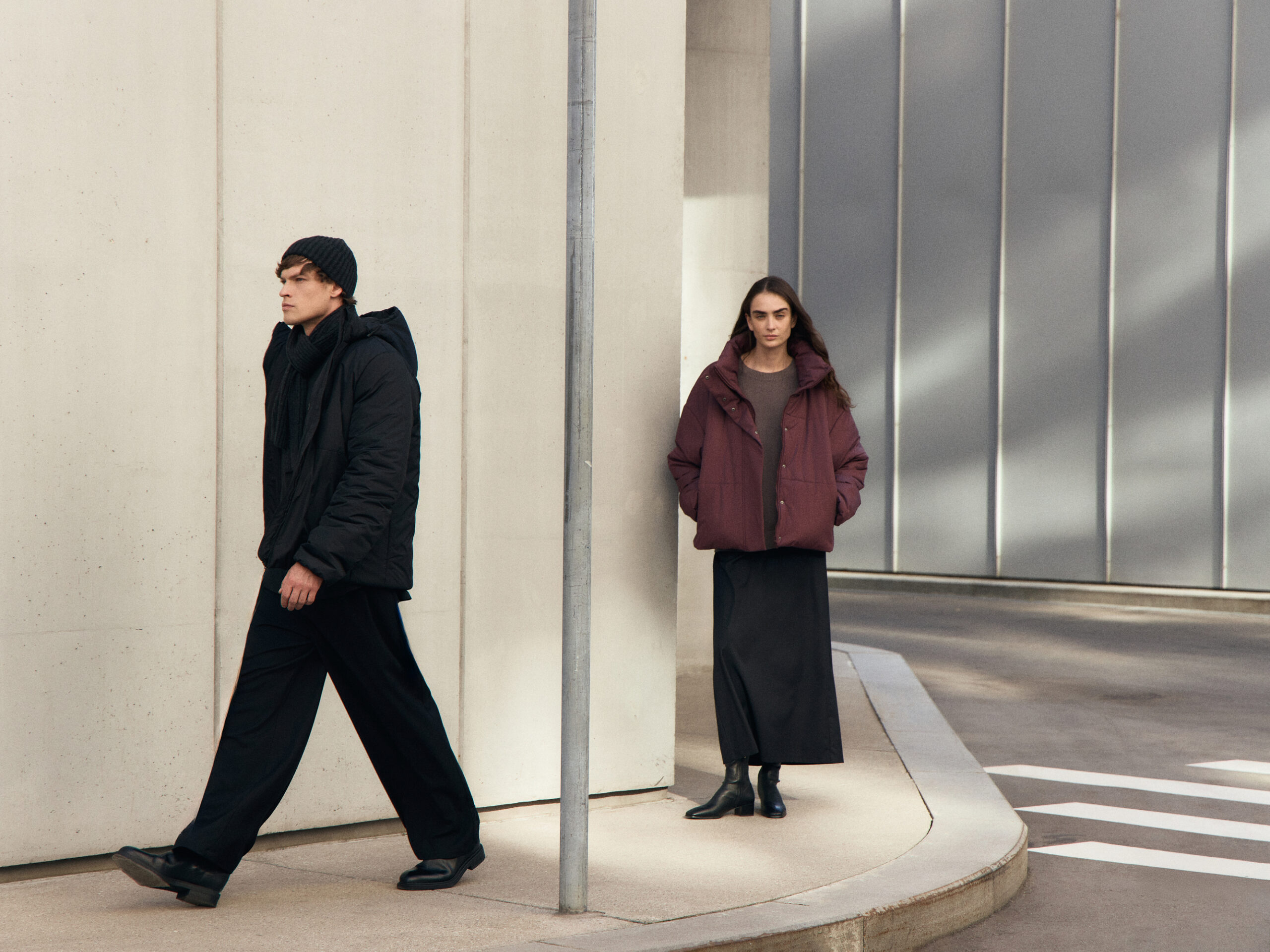 Посредством стилизации выстраивается ассоциативный ряд: свитер с текстурной вязкой поверх клетчатой рубашки, дополненный удобными брюками; объемный джемпер в сочетании с юбкой, украшенной нарядными пайетками; экошуба с анималистичным принтом, контрастирующая с фактурой спортивного костюма, и, конечно, акцентные аксессуары — шапка-ушанка и яркая дорожная сумка.