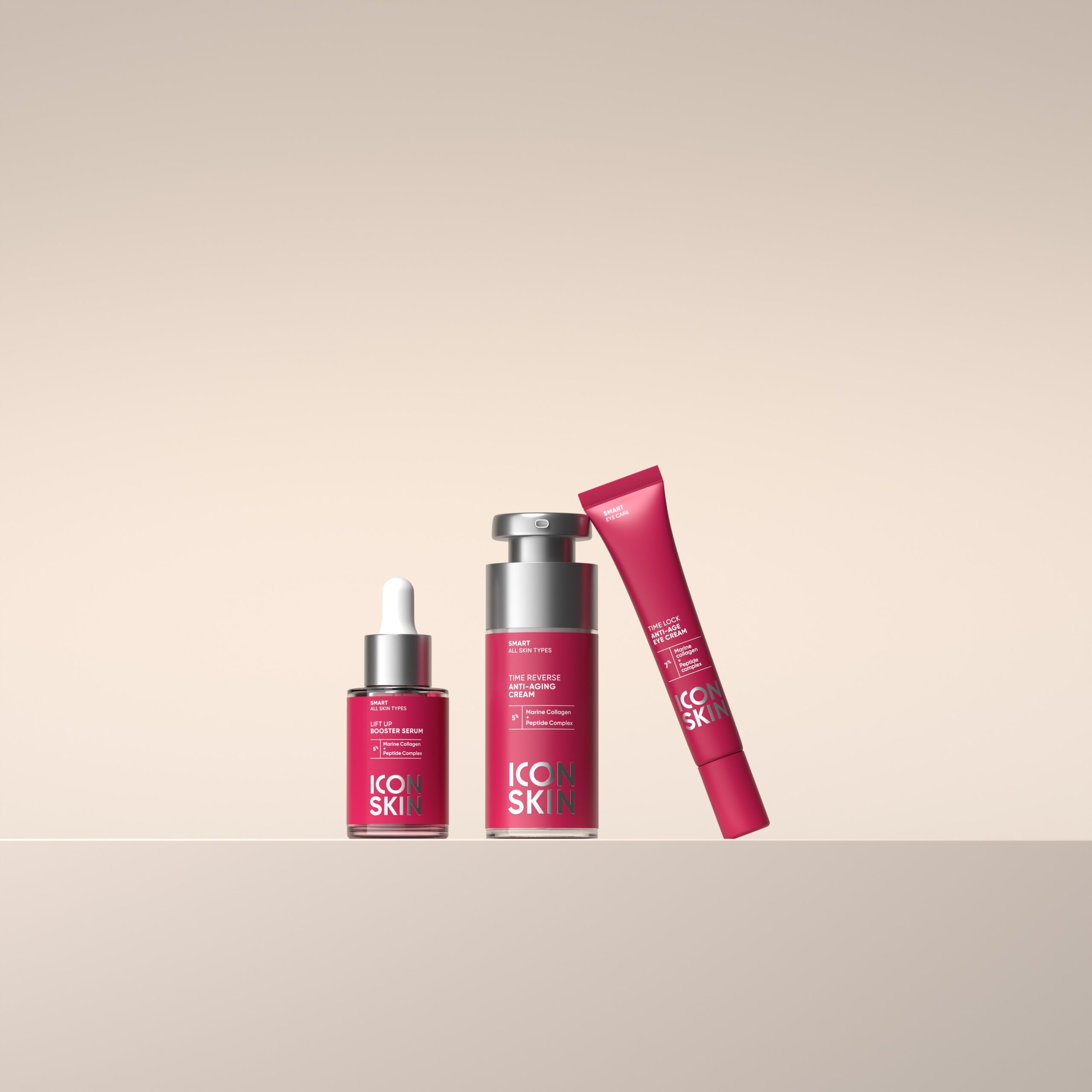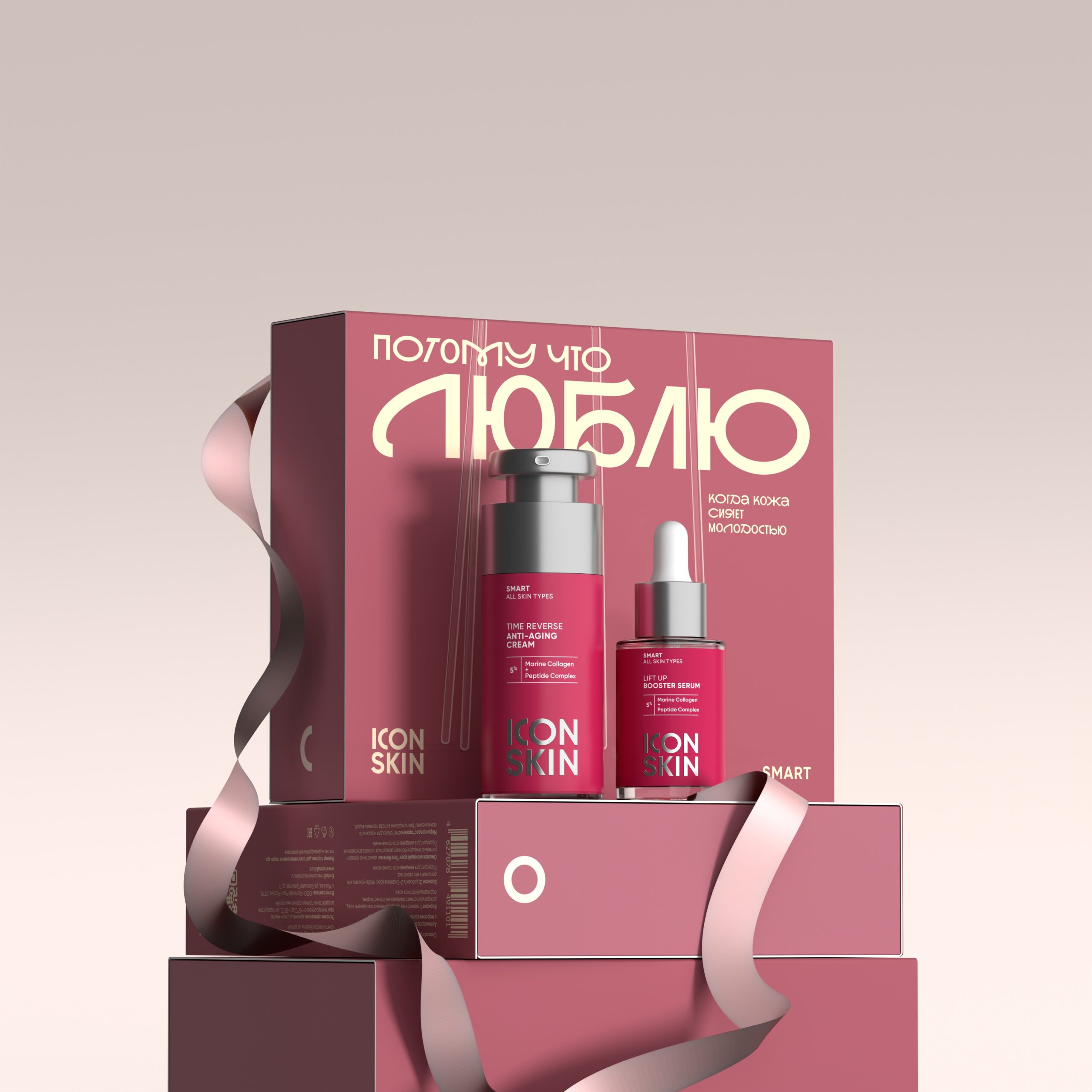 Подарок, выбранный с душой и приносящий реальную пользу, передает чувства точнее любых признаний. Icon Skin воплотили эту философию в подарочном наборе SMART ANTI-AGE. Набор включает два средства, которые продлевают молодость кожи и обеспечивают комплексный уход. Антивозрастная сыворотка-концентрат с морским коллагеном и пептидами Lift Up разработана для направленного омолаживающего действия. Средство уменьшает выраженность морщин, возвращает коже гладкость и упругость. Морской коллаген и пептиды в составе стимулируют синтез собственного коллагена и эластина, дополнительно увлажняют и поддерживают правильный гидробаланс кожи.