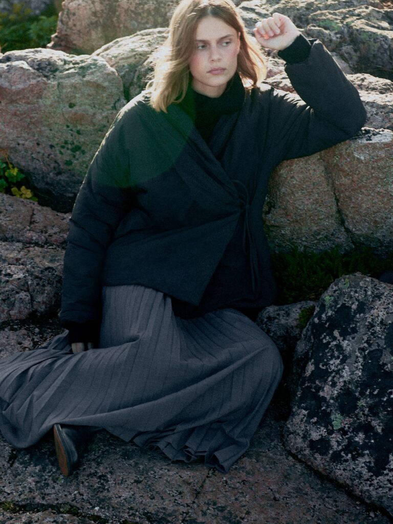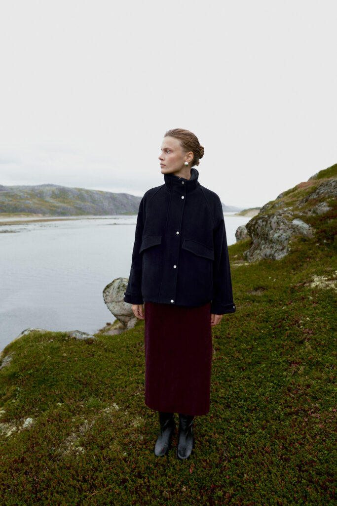 Рассказать свою историю на фоне суровых условий Териберки решилась команда российского бренда Emka. Дизайнеры вдохновились пейзажами Крайнего Севера и его балансом. В новой коллекции соседствуют структура и мягкость, классика и смелое самопроявление. Силуэты получили более структурную приталенную форму, в принтах появилась елочка, клетка, меланж и полоска. Палитра варьируется от ледяного серого до оттенка «горький шоколад» и «мягкий хаки». Собираем корзину для осеннего шопинга вместе.