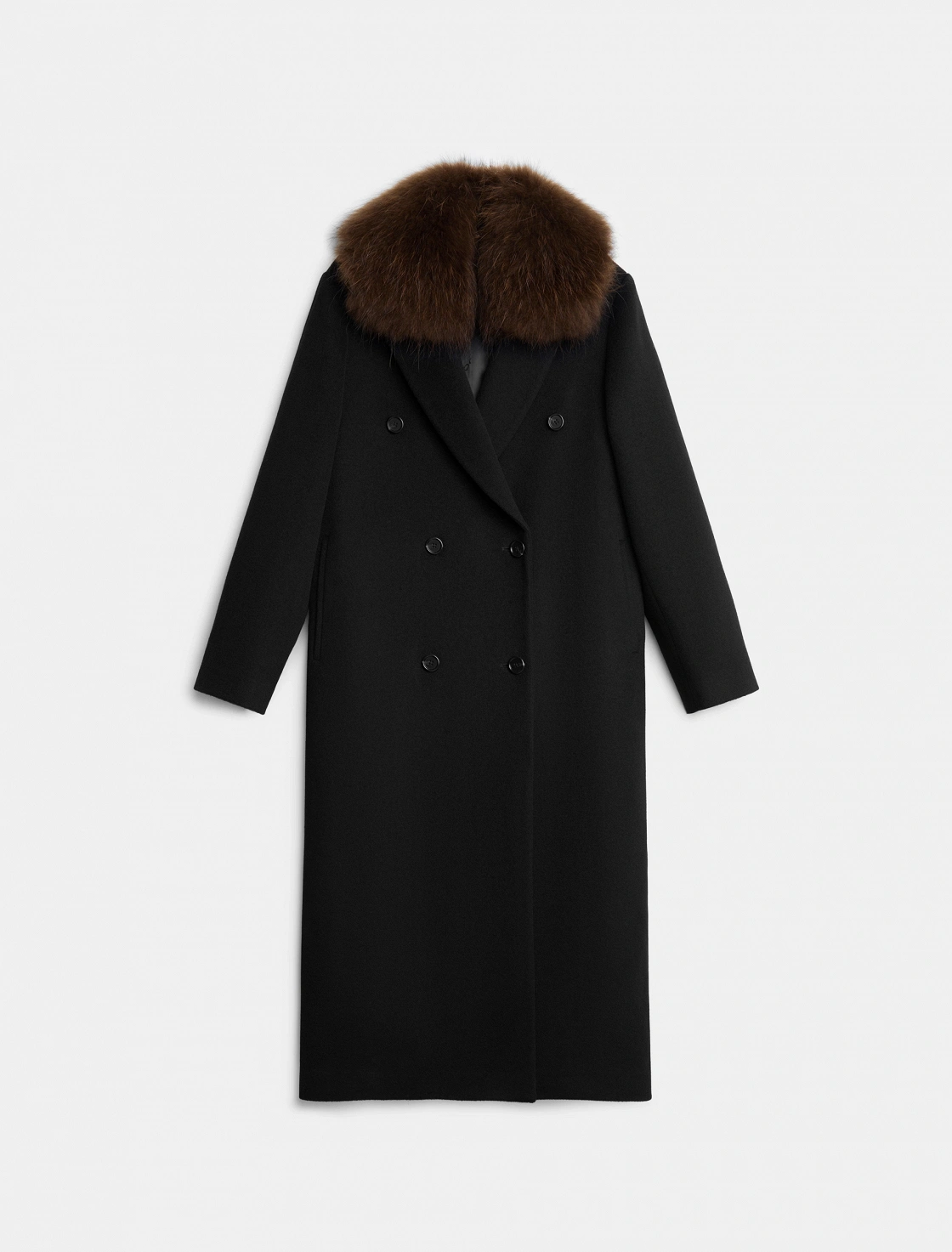 Собираемся на деловую встречу или кинопремьеру в шоколадной блузе из тенсела, украшенной крупным бантом, брюках широкого кроя с завышенной талией и коричневых ботильонах из натуральной кожи. Сверху накидываем шерстяное двубортное пальто с меховым воротником, а руку украшаем кольцом из желтого золота с турмалином и бриллиантами.