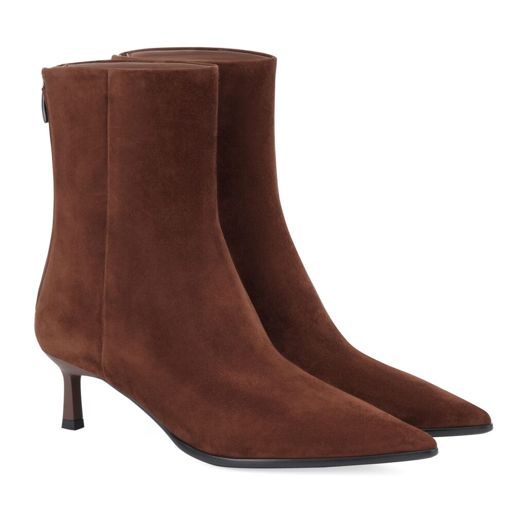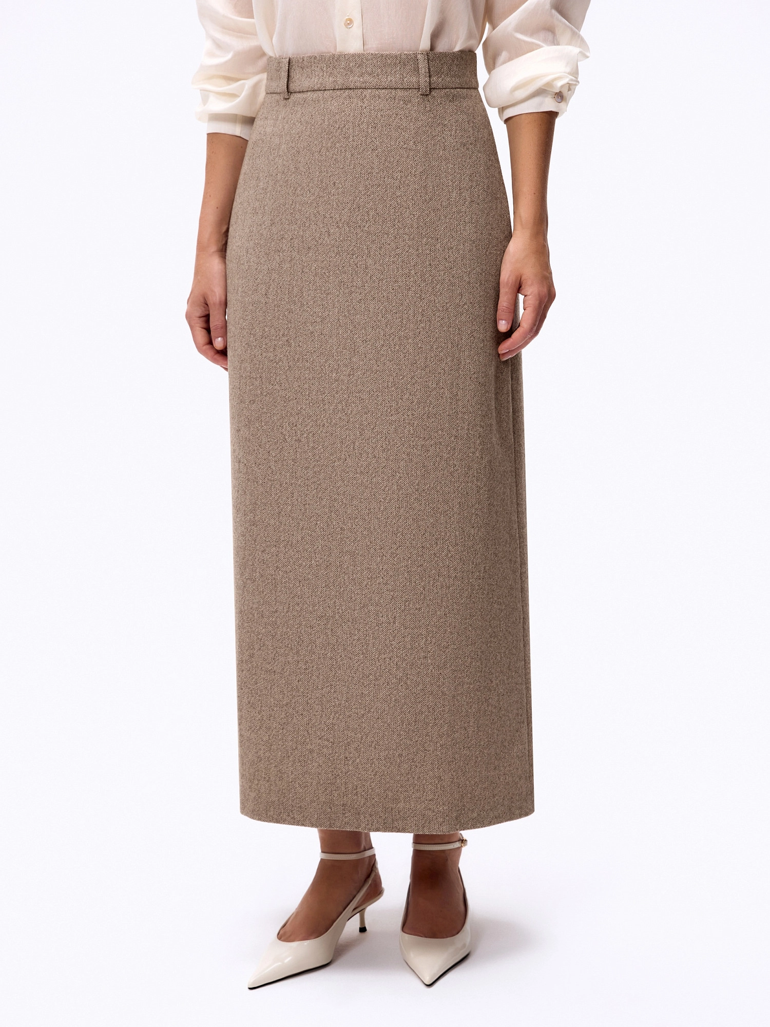 Собираем образ с другими айтемами марки — приталенным бежевым жилетом и юбкой миди из костюмной шерсти. Добавляем вместительную сумку-шопер из натуральной замши и демисезонные ботильоны облегающего силуэта на каблуке. Последние детали: серьги с турмалином их желтого золота, акцентное кольцо и однотонные солнцезащитные очки.