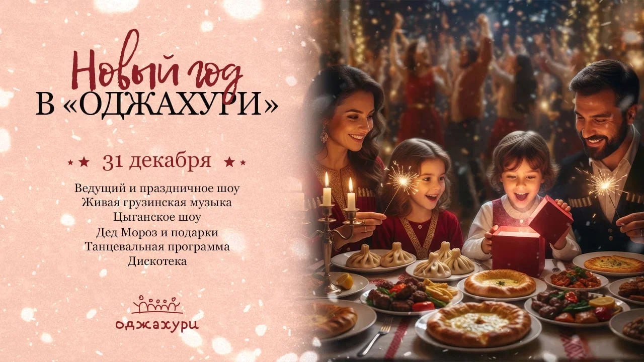 Новогодняя ночь в «Оджахури» — это честное грузинское застолье с танцами до утра, живой музыкой и тем самым теплым гостеприимством, ради которого приходят семьями и компаниями. 31 декабря ресторан встречает гостей в атмосфере праздника без лишней мишуры: шоу-группа «Метехи» задаст ритм вечеру, национальные танцы наполнят зал энергией, живая музыка и ведущие с легким грузинским акцентом удержат темп тостов и интерактивов, а Дед Мороз и Снегурочка подготовят сюрпризы и подарки. После боя курантов — зажигательная дискотека, которая продлится до самого утра.