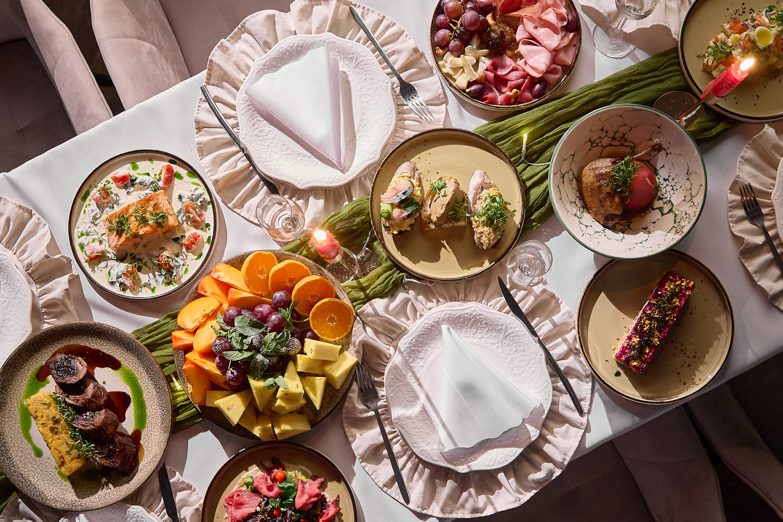Меню построено на гармонии грузинских традиций и новогодней классики. К закускам подадут баклажаны с орехами, ассорти пхали, сациви из курицы, свежую выпечку, хачапури. На праздничном столе обязательно появятся оливье, селедка под шубой и домашний холодец. В горячих — чахохбили, цыпленок чкмерули, шашлыки и другие хиты «Оджахури». По предварительному заказу доступны банкетные блюда на большую компанию: молочный поросенок, запеченная стерлядь, индейка и другие позиции. Праздничная программа стартует в 22:00 и продлится до самого утра.